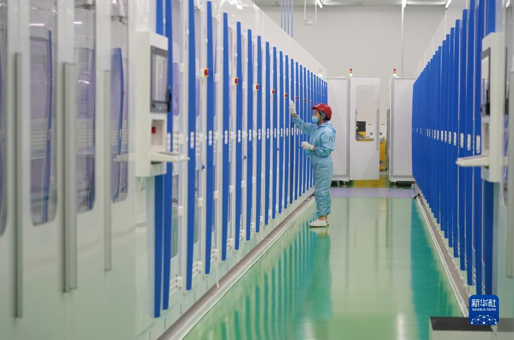9月28日,工人在隆基綠能15GW高效單晶電池項目車(chē)間內清潔設備。