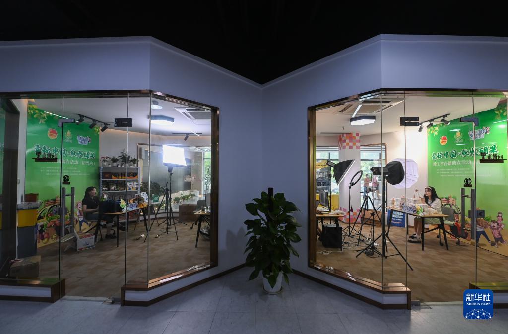 9月28日,參加共富直播周活動(dòng)的直播團隊正在進(jìn)行特色農產(chǎn)品直播。