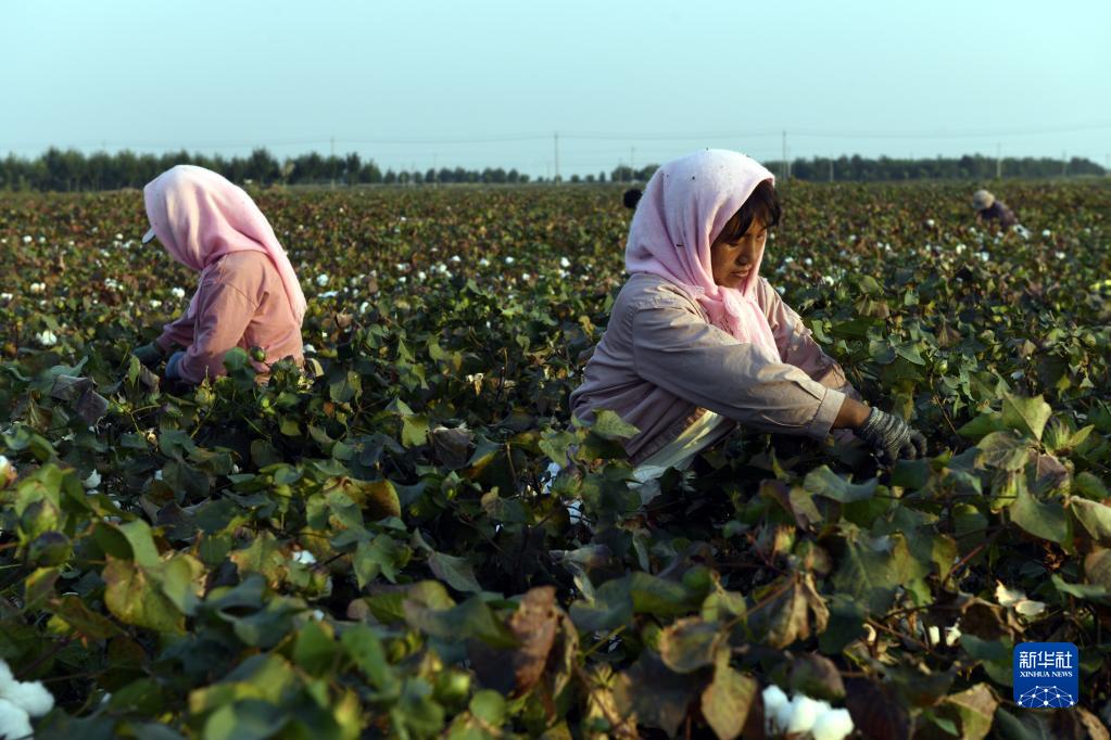 9月28日,山東省濱州市無(wú)棣縣西小王鎮棉農在采收新棉。