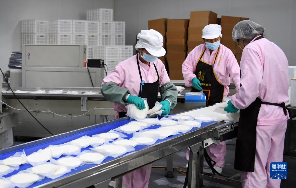 陜西省渭南市潼關(guān)縣盛潼餐飲管理有限公司的工作人員在生產(chǎn)加工車(chē)間分裝肉夾饃速凍餅(9月28日攝)。潼關(guān)肉夾饃是著(zhù)名特色小吃,目前全縣10余家肉夾饃企業(yè)實(shí)現了自動(dòng)化,全縣每天可生產(chǎn)230多萬(wàn)個(gè)肉夾饃餅,銷(xiāo)往全國各地及海外地區。