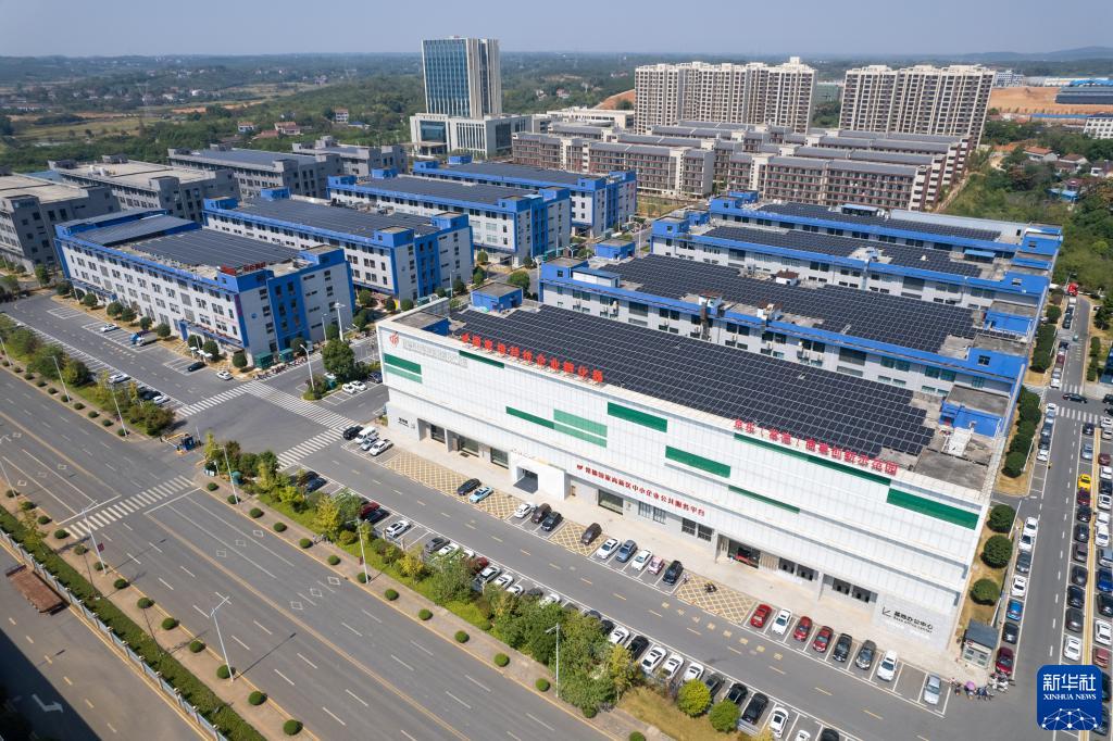 這是9月29日在湖南常德高新區拍攝的常德科技創(chuàng )新創(chuàng )業(yè)孵化產(chǎn)業(yè)園全景(無(wú)人機照片)。