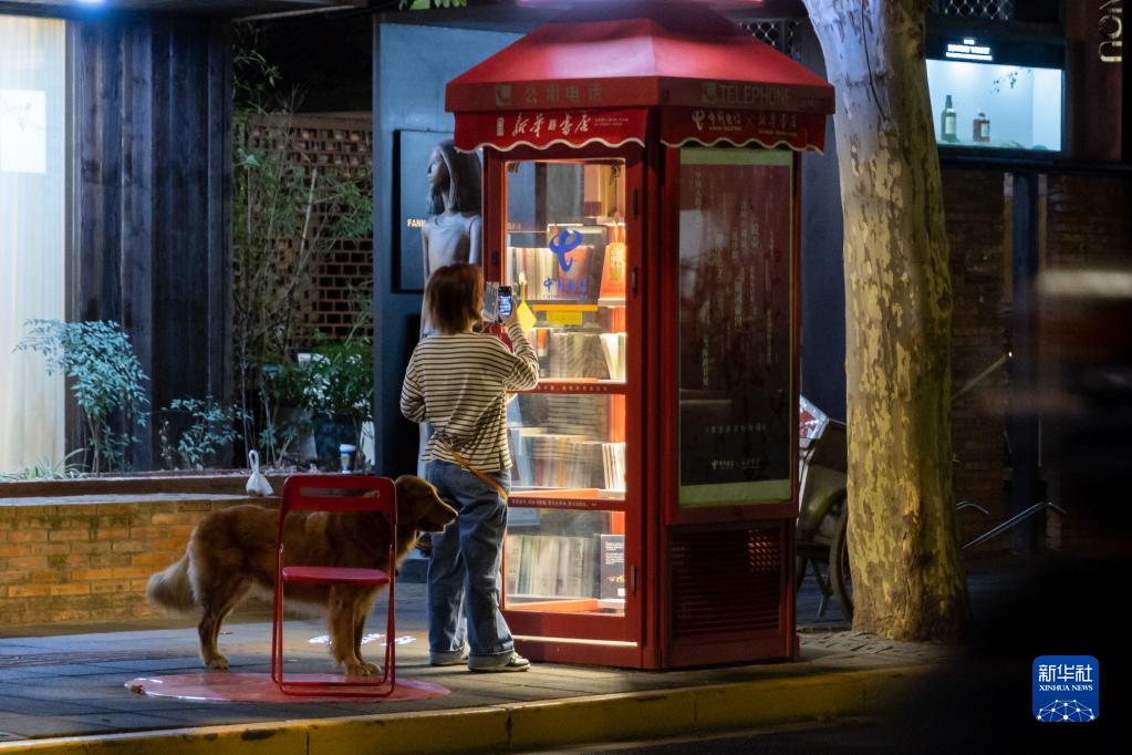 近日,在上海市長(cháng)寧區新華路上,新華路街道聯(lián)合新華書(shū)店和中國電信,將5個(gè)閑置電話(huà)亭重新布置為一平方米大小的微型書(shū)店——“新華路書(shū)店”。采用全自助式的新華路書(shū)店是公益性質(zhì)快閃書(shū)店,于9月29日至10月3日對公眾開(kāi)放。書(shū)店包含“綜合”“教輔”“交換”“少兒”主題。市民可隨意取下店里的書(shū)坐在路旁閱讀,或掃碼購買(mǎi)帶走,出售書(shū)籍的款項后續將用于助力公益事業(yè)。