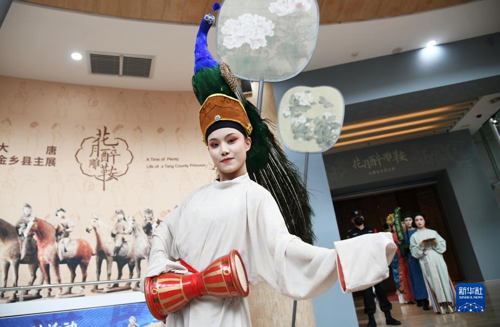 9月30日,身著(zhù)復原唐裝的演員在大唐金鄉縣主展開(kāi)展儀式上表演。
