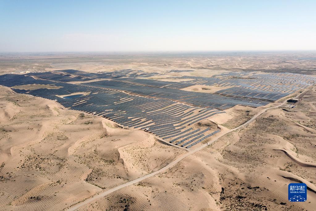 新華全媒+丨立體光伏治沙產(chǎn)業(yè)化項目繪就騰格里沙漠“生態(tài)綠”