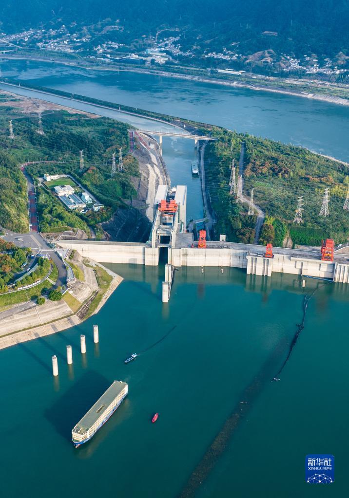 2022年9月29日,船舶有序通過(guò)三峽升船機(無(wú)人機照片)。