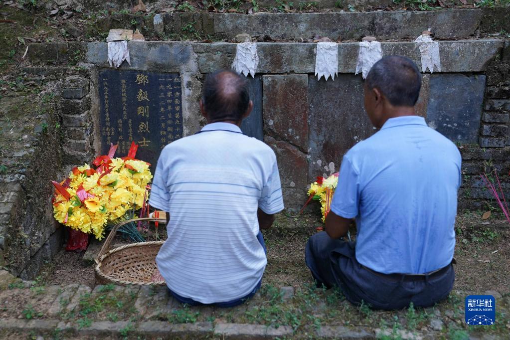 在江西省贛州市于都縣寬田鄉石含村,有一座紅軍烈士墓,埋葬著(zhù)鄧毅剛烈士的遺骨。石含村的謝家祖孫六代從1932年起守護烈士墓,至今已90年。如今,七十多歲的謝南京還是堅持帶著(zhù)家人經(jīng)常來(lái)到鄧毅剛烈士墓前,為這位“鄧爺爺”掃墓。