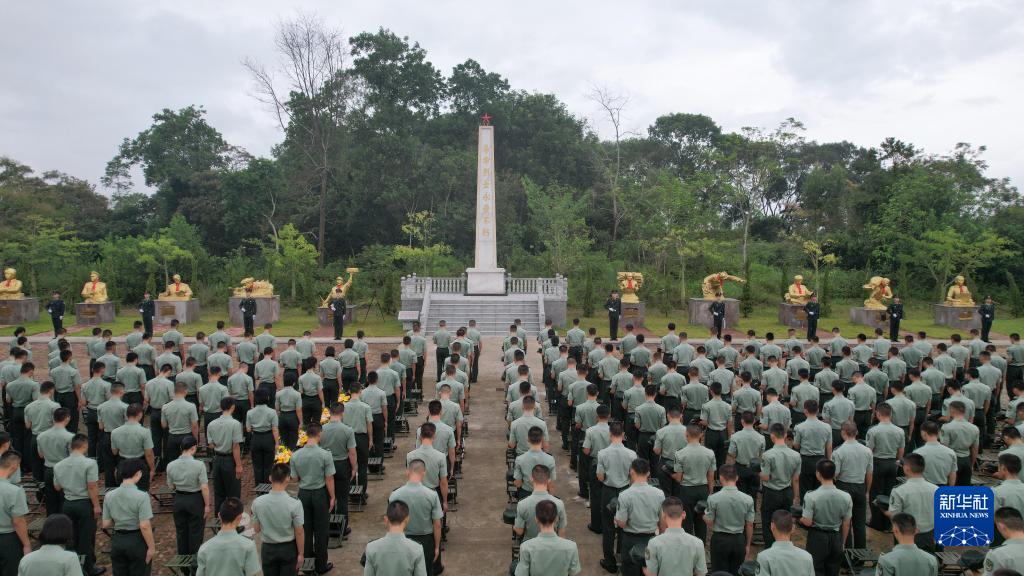 9月30日,南部戰區陸軍第74集團軍某旅組織官兵在旅革命烈士紀念碑前舉行“緬懷革命先烈 弘揚英雄精神”主題教育活動(dòng)(無(wú)人機照片)。