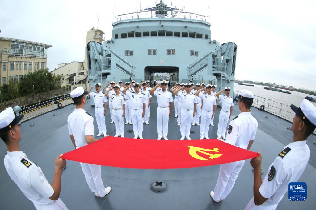 9月30日,東部戰區海軍某登陸艦大隊徂徠山艦在烈士紀念日組織官兵重溫入黨誓詞。