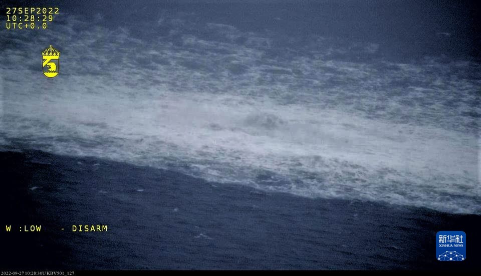 這張瑞典海岸警衛隊9月27日發(fā)布的航拍照片顯示的是一處“北溪”天然氣管道泄漏點(diǎn)。
