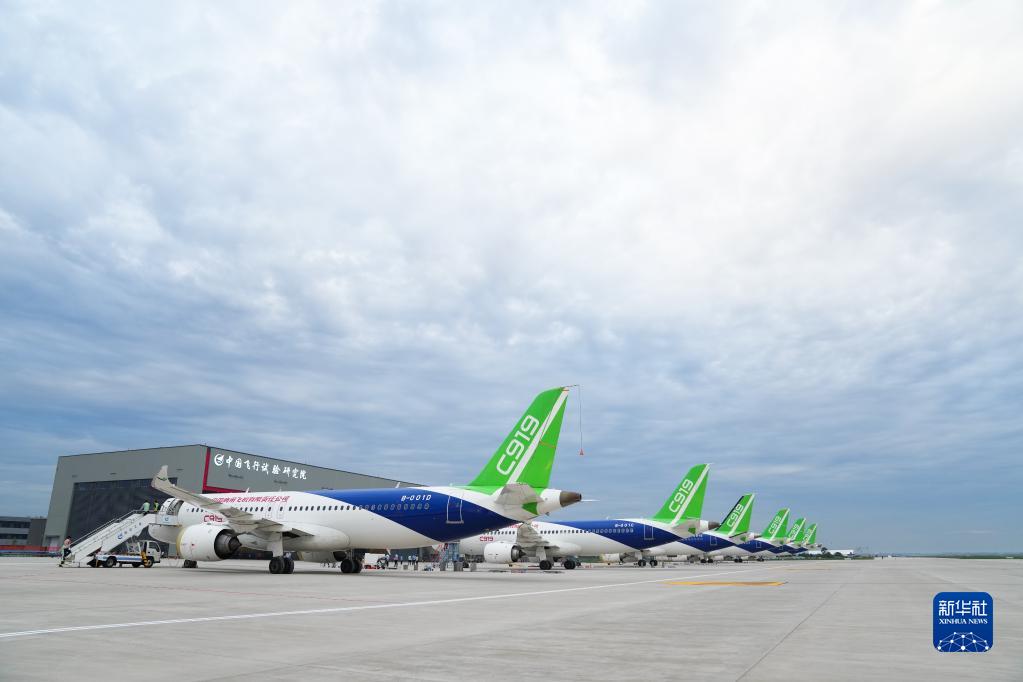 這是2022年7月18日在陜西省蒲城縣拍攝的C919大飛機的試飛機。新華社記者 丁汀 攝