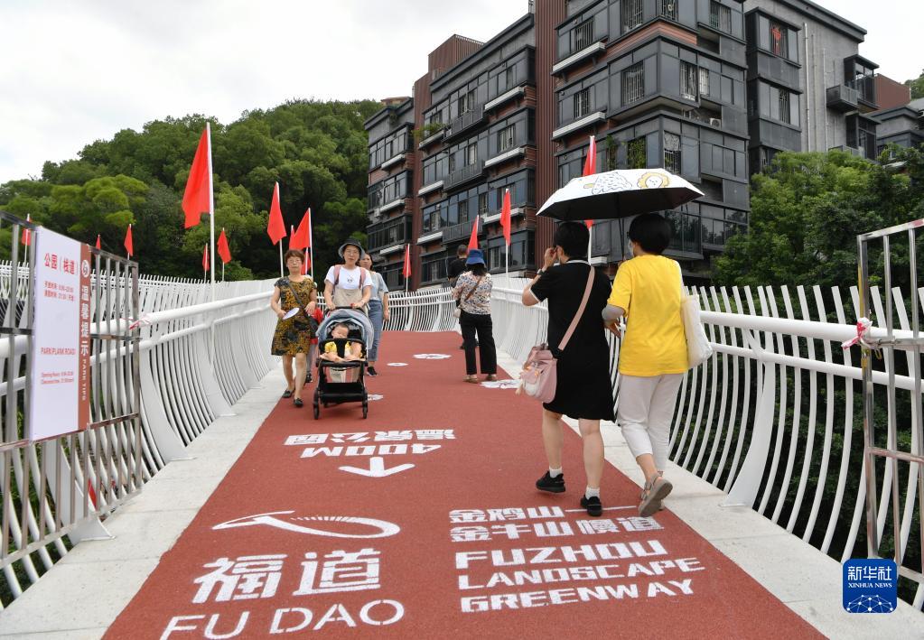 10月1日,在福建省福州市,市民在新開(kāi)放的金雞山公園茉莉花生態(tài)廊道游玩。