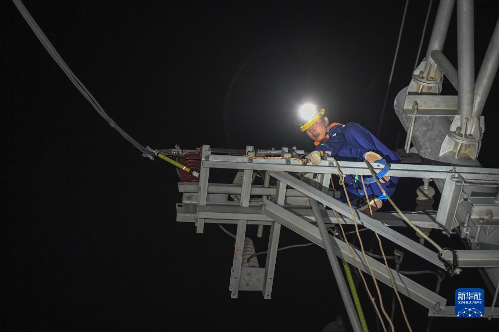 10月1日,在吉林省長(cháng)春市,中國鐵路沈陽(yáng)局集團有限公司長(cháng)春高鐵基礎設施段的接觸網(wǎng)工在檢修接觸網(wǎng)設備。