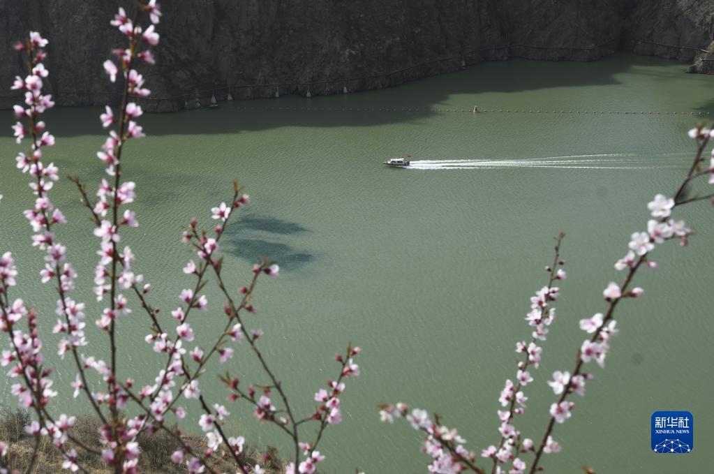 4月1日,快艇在位于甘肅省臨夏回族自治州永靖縣的劉家峽水庫內行駛。