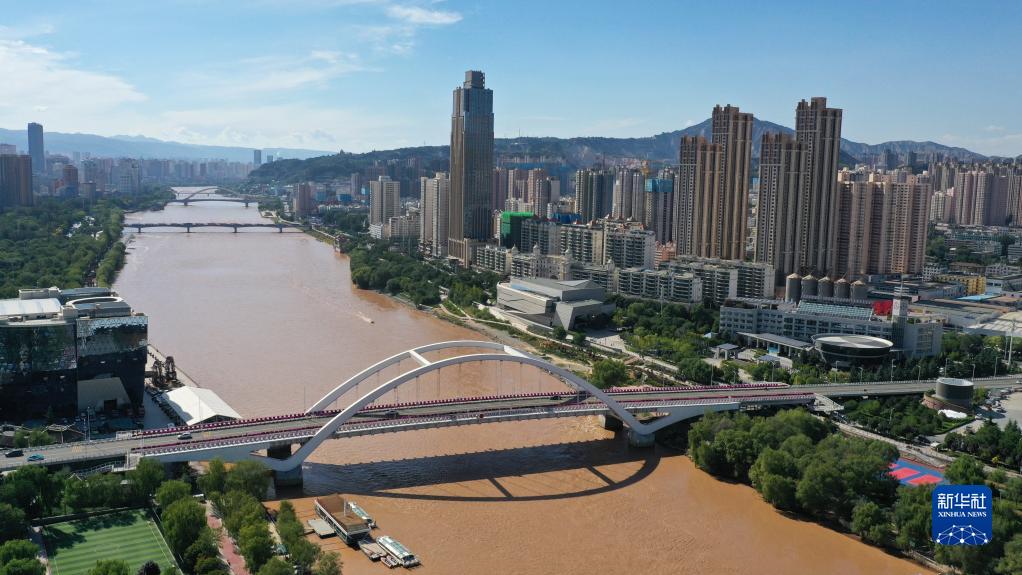 這是在甘肅省蘭州市拍攝的黃河兩岸城市風(fēng)光(9月5日攝,無(wú)人機照片)。