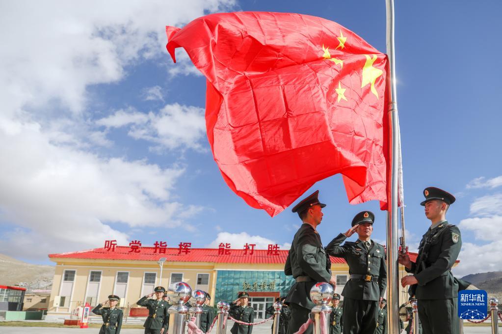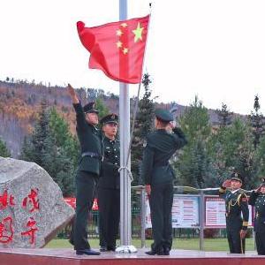 10月1日,駐守帕米爾高原的新疆軍區某邊防團紅其拉甫邊防連官兵舉行升國旗儀式。