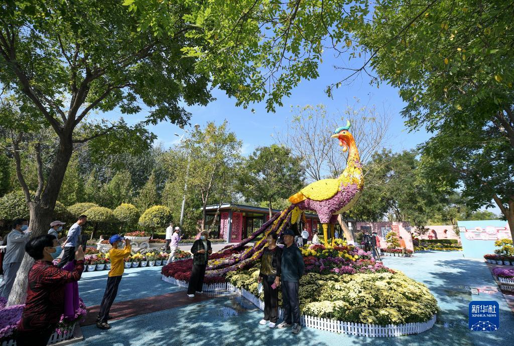 10月1日,市民在寧夏銀川花博園賞花游玩。