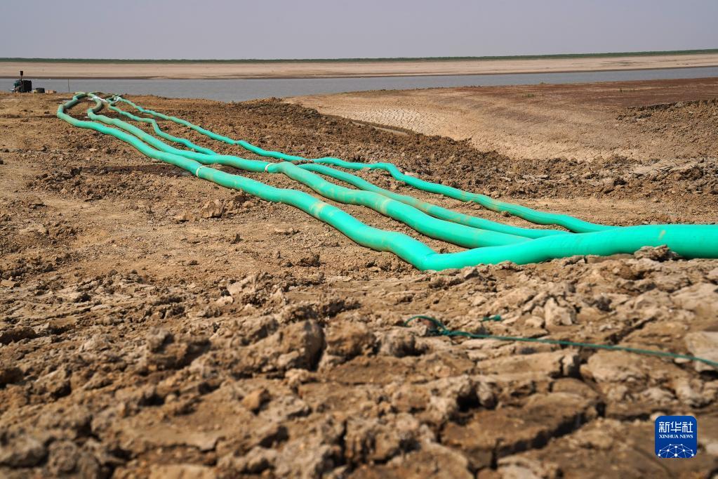 為碟形湖輸水用的水管(9月28日攝)。