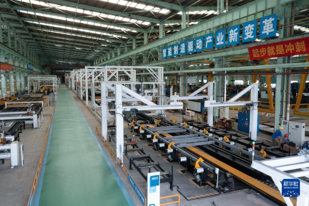 智能化鋼結構模塊化生產(chǎn)線(xiàn)(2022年9月28日攝,無(wú)人機照片)。