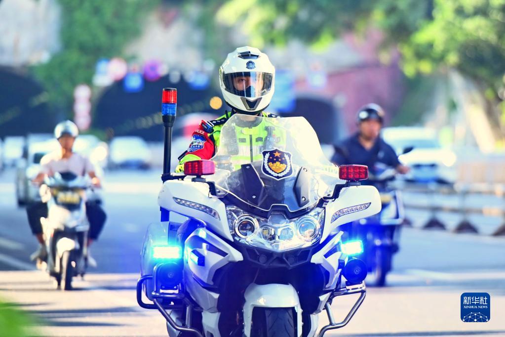 10月2日,福州市公安局交警支隊機動(dòng)特勤大隊“鐵騎隊員”王斌在福州市鼓樓區西二環(huán)北路巡邏。