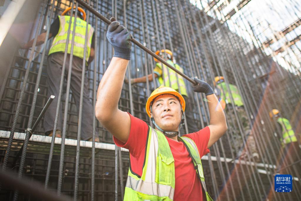 10月2日,中鐵七局工人在滬渝蓉高鐵武宜段龍泉河特大橋施工現場(chǎng)作業(yè)。