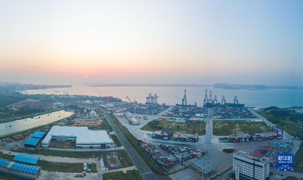 在海南洋浦經(jīng)濟開(kāi)發(fā)區拍攝的洋浦國際集裝箱碼頭(無(wú)人機全景照片,9月25日攝)。