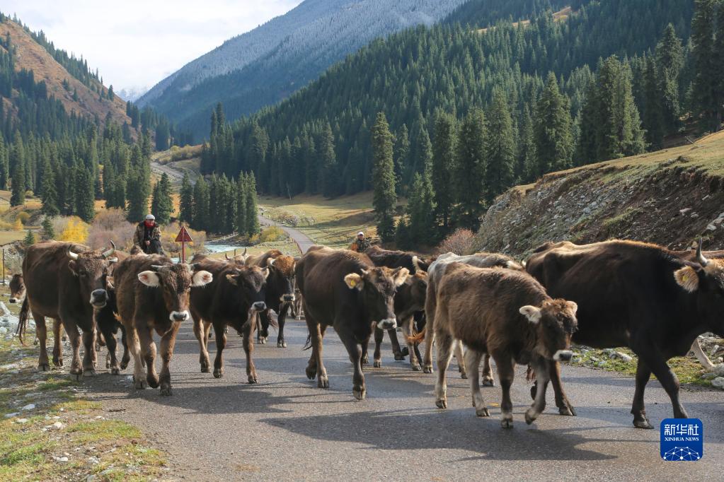 新疆昭蘇:褐牛轉場(chǎng)出天山