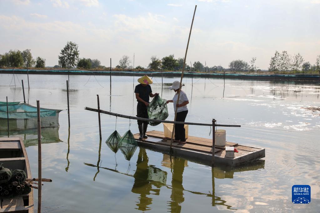 10月3日,安徽省明光市女山湖鎮漁民在進(jìn)行捕撈作業(yè)。