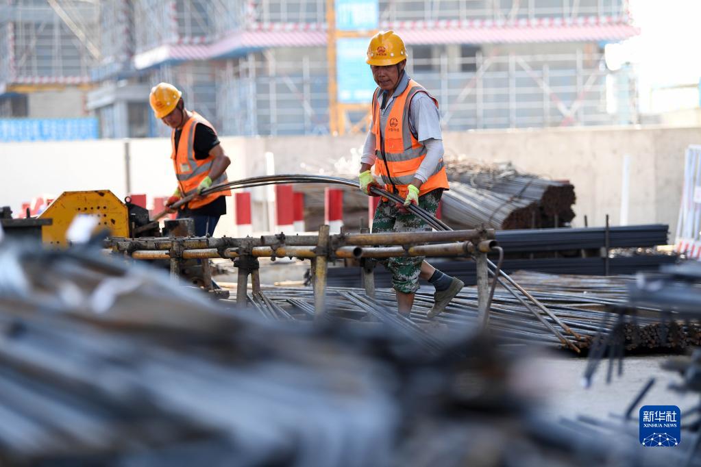 10月3日,工人在中鐵四局合肥市瑤海區荷塘家園一期二標安置房項目現場(chǎng)施工。