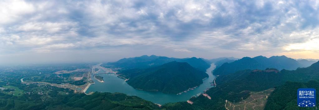 這是建設中的廣西大藤峽水利樞紐工程和周邊峽谷(2022年9月28日攝,無(wú)人機照片)。
