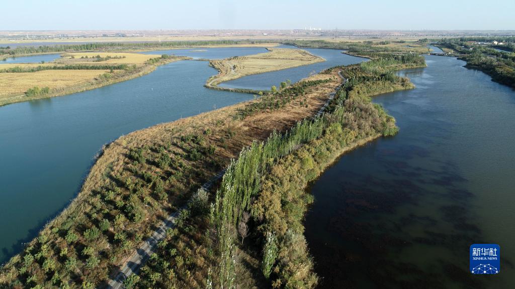 這是10月4日在寧夏銀川市賀蘭縣拍攝的黃河秋景(無(wú)人機照片)。