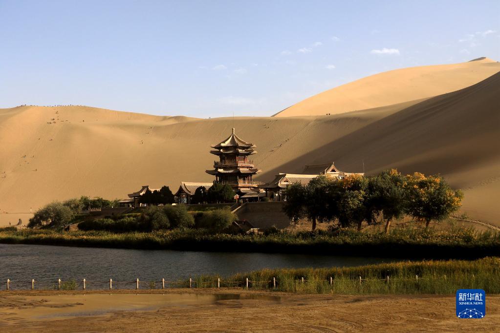 這是10月4日拍攝的甘肅省敦煌市鳴沙山月牙泉景區。