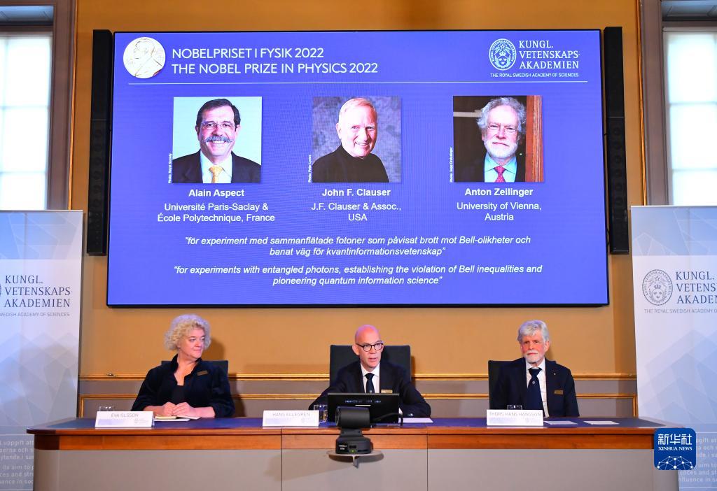 瑞典皇家科學(xué)院4日宣布,將2022年諾貝爾物理學(xué)獎授予法國科學(xué)家阿蘭·阿斯佩、美國科學(xué)家約翰·克勞澤和奧地利科學(xué)家安東·蔡林格,以表彰他們在“糾纏光子實(shí)驗、驗證違反貝爾不等式和開(kāi)創(chuàng )量子信息科學(xué)”方面所做出的貢獻。