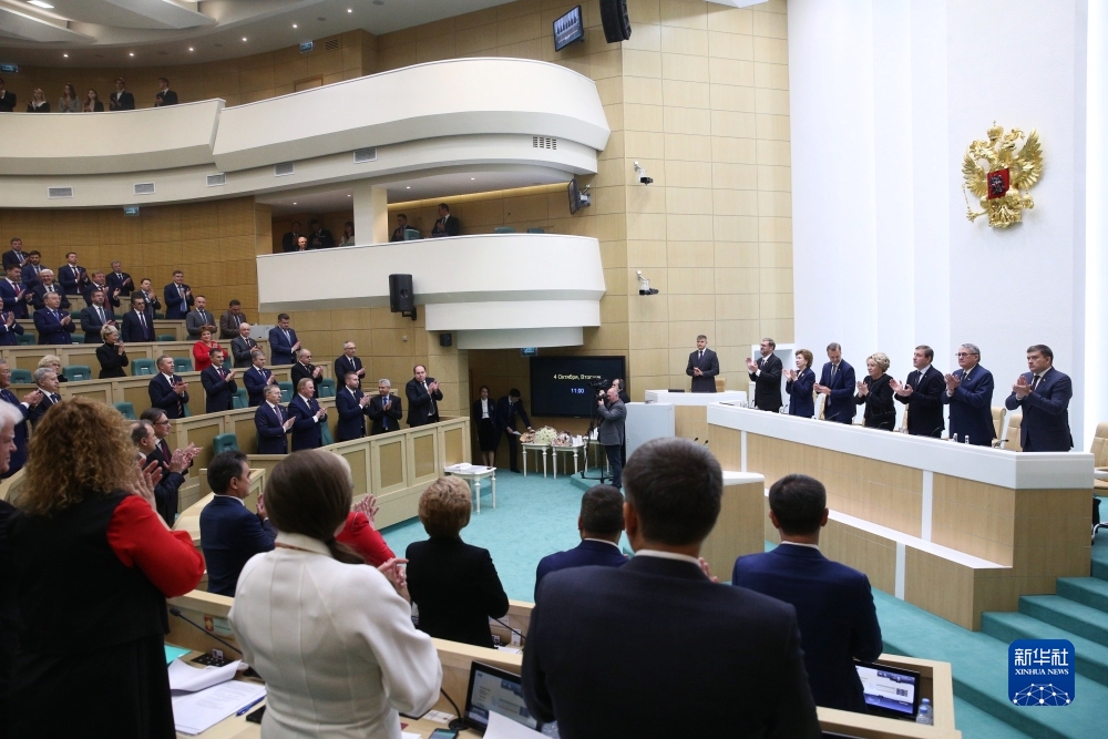 這張俄羅斯聯(lián)邦委員會(huì )提供的照片顯示的是,10月4日,俄羅斯聯(lián)邦委員會(huì )(議會(huì )上院)舉行全體會(huì )議,通過(guò)接納頓涅茨克、盧甘斯克、扎波羅熱和赫爾松四地加入俄羅斯聯(lián)邦的條約和憲法草案。新華社/衛星社