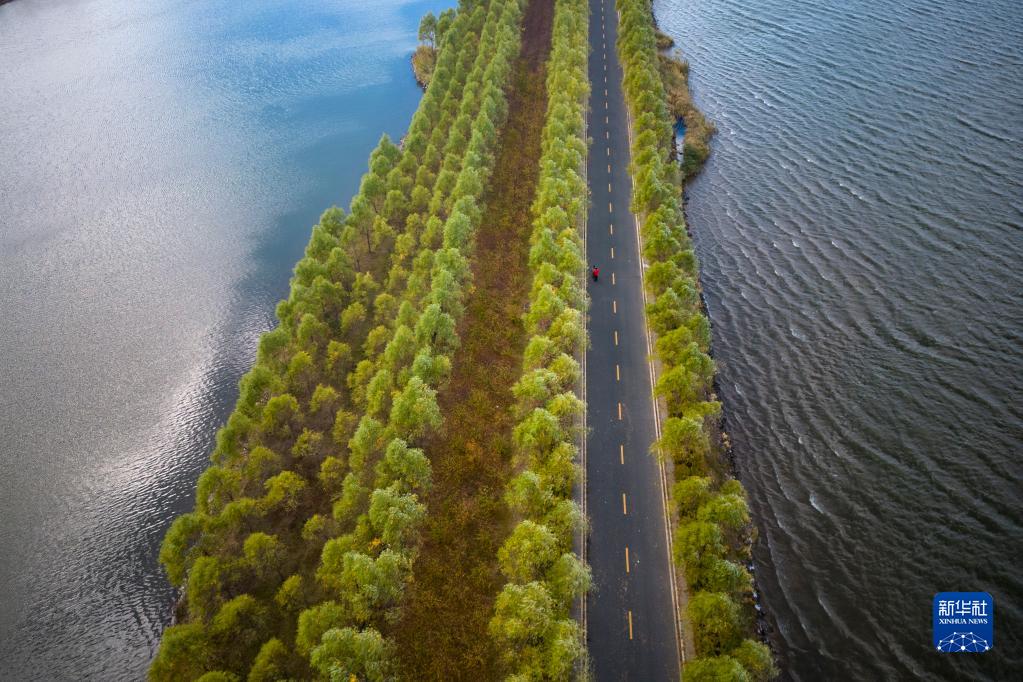 這是10月4日拍攝的哈爾濱呼蘭河口濕地公園內的景色(無(wú)人機照片)。