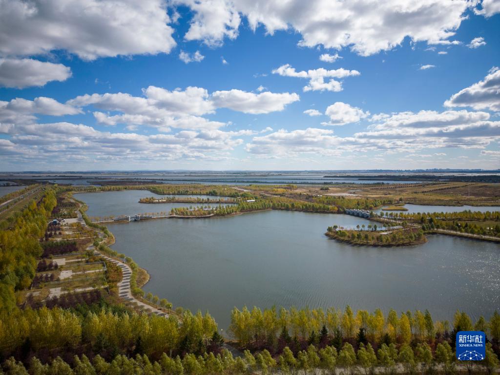 這是10月4日拍攝的哈爾濱呼蘭河口濕地公園內的景色(無(wú)人機照片)。