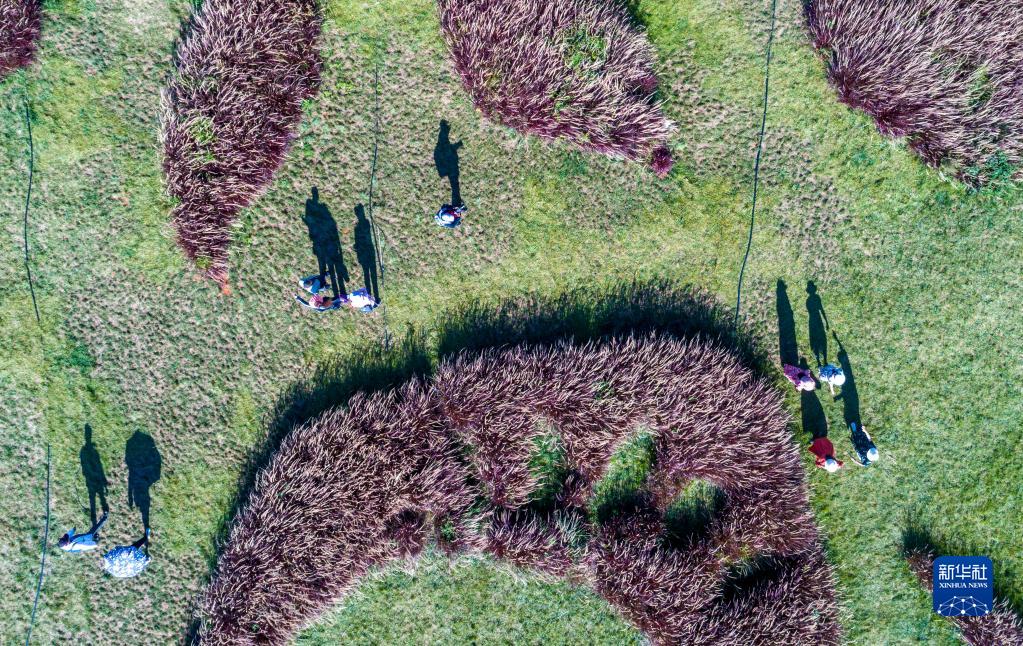 10月5日,市民在云南昆明寶豐半島濕地公園游覽(無(wú)人機照片)。