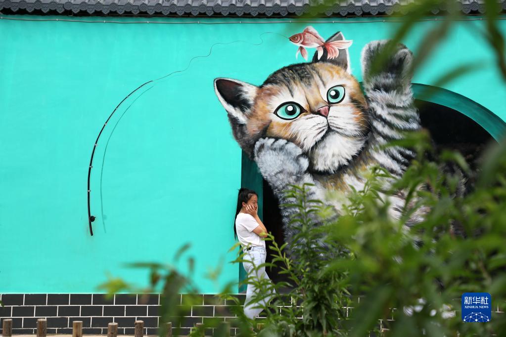 10月5日,在云南省紅河哈尼族彝族自治州蒙自市新安所街道窯房村,市民在立體墻畫(huà)前拍照。