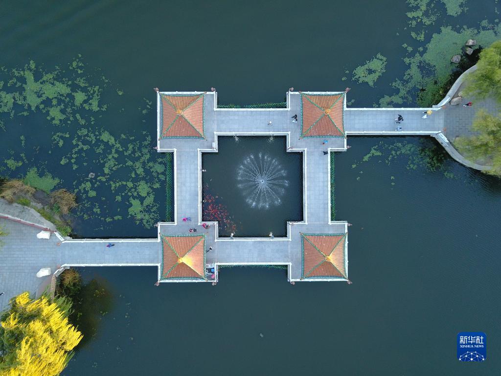 這是10月4日拍攝的吉林長(cháng)春南湖公園四亭橋秋景(無(wú)人機照片)。