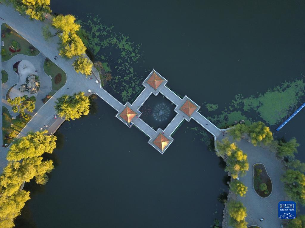 這是10月4日拍攝的吉林長(cháng)春南湖公園四亭橋秋景(無(wú)人機照片)。