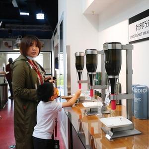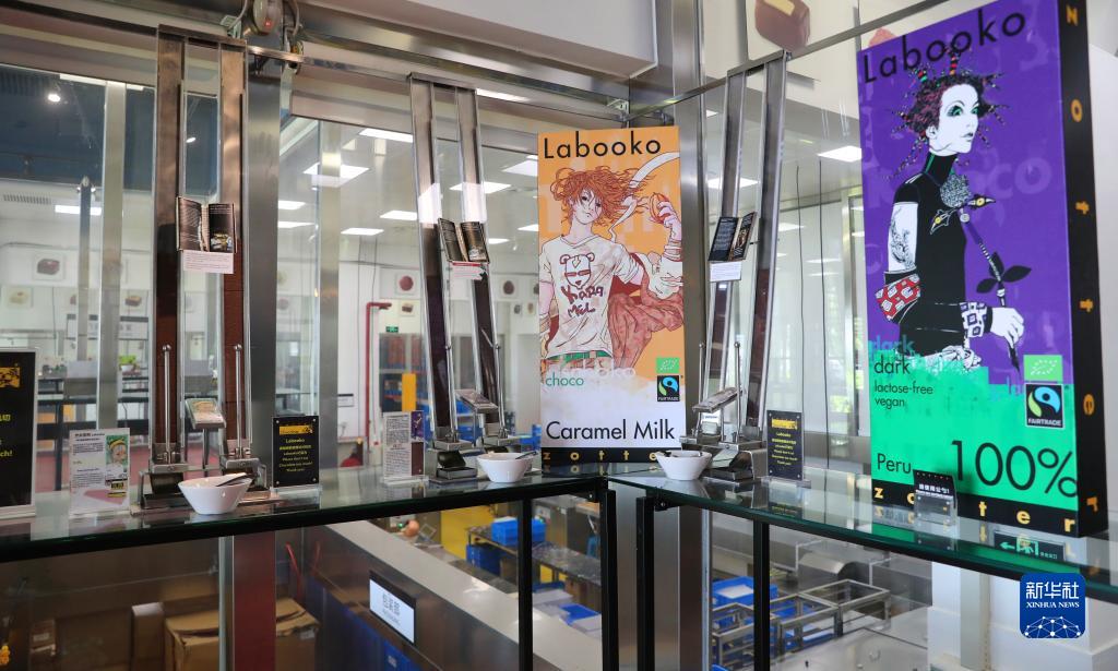 在位于上海楊浦濱江的奧地利珍得巧克力劇院拍攝的設在包裝車(chē)間上的透明巧克力品嘗區(2022年9月20日攝)。