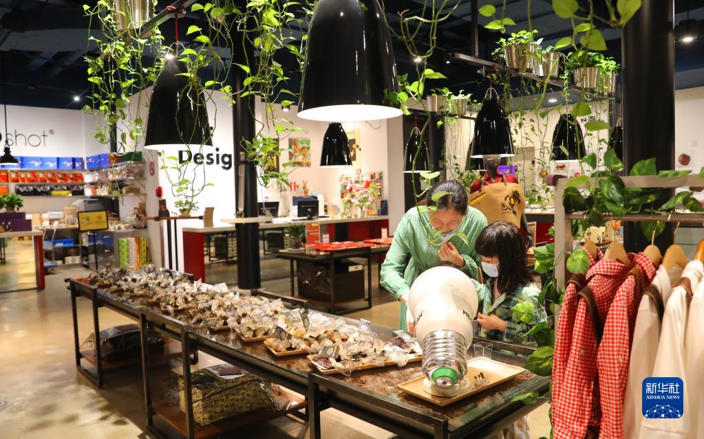 游客們在位于上海楊浦濱江的奧地利珍得巧克力劇院商店內挑選巧克力(2022年9月24日攝)。