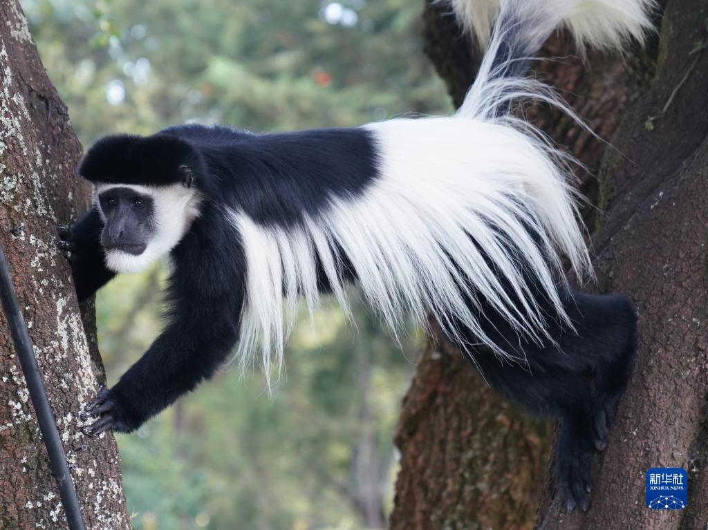 這是10月5日在肯尼亞納紐基拍攝的東非黑白疣猴。