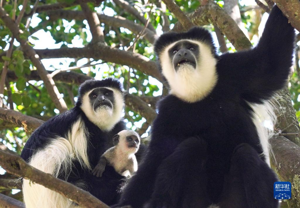 這是10月5日在肯尼亞納紐基拍攝的東非黑白疣猴。
