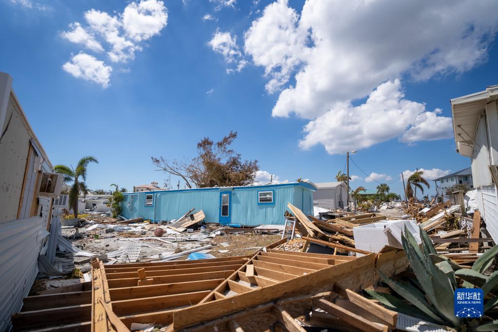 這是10月4日在美國佛羅里達州邁爾斯堡拍攝的遭颶風(fēng)“伊恩”破壞的建筑。 新華社發(fā)(羅蘭多·洛佩斯攝)