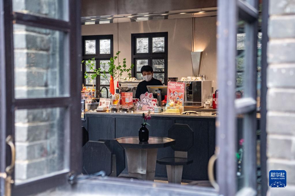 10月6日,在重慶市渝中區一處由老建筑改建的小型商業(yè)綜合體“小黃樓”內,工作人員在制作咖啡。