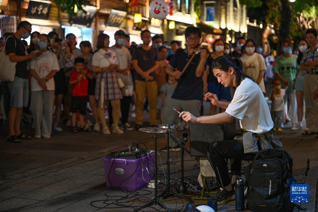 10月6日,年輕人在福州三坊七巷歷史文化街區表演音樂(lè )節目。