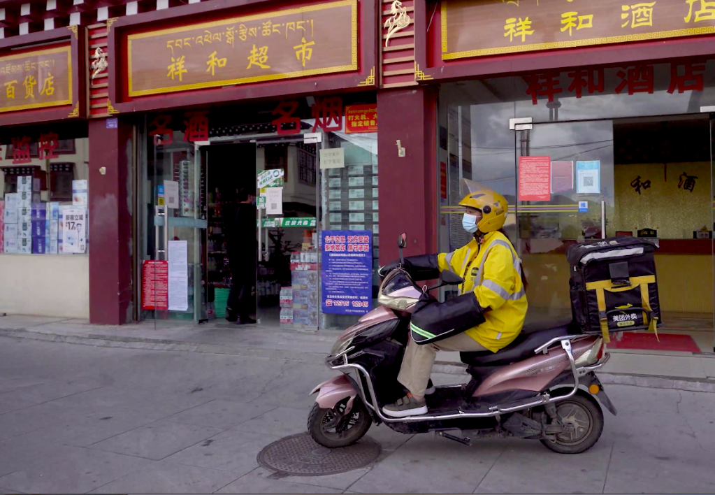 “剛開(kāi)始家里人不同意我送外賣(mài),覺(jué)著(zhù)對女孩子來(lái)說(shuō)太辛苦了?!奔谉嵴f(shuō),按照當地傳統,女性大多要待在家中操持家務(wù)。她原本是在菜市場(chǎng)幫父親賣(mài)酥油,收入微薄。