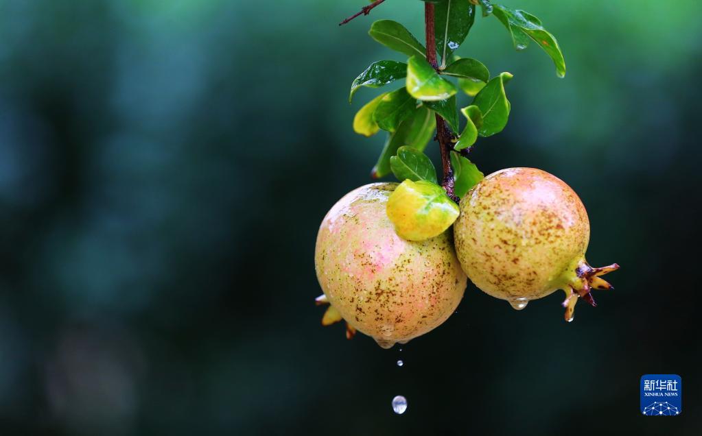 在山東省滕州市西崗鎮拍攝的石榴(10月1日攝)。