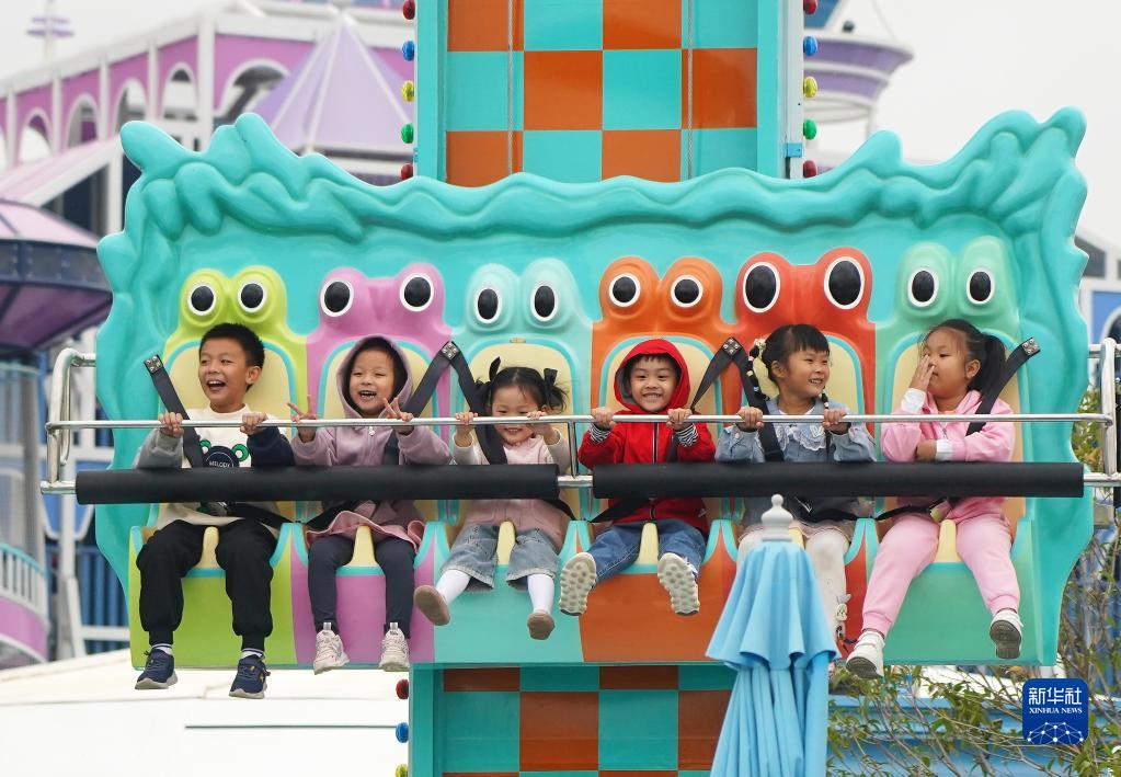 10月6日,在南昌市西湖區歡樂(lè )星際樂(lè )園,孩子們體驗太空主題的游樂(lè )項目。