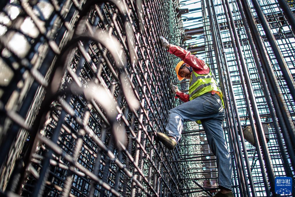 10月2日,中鐵七局工人在滬渝蓉高鐵武宜段龍泉河特大橋施工現場(chǎng)作業(yè)。